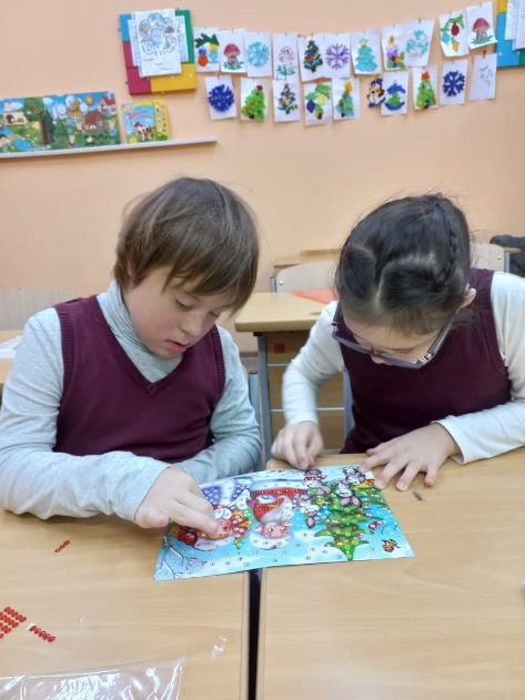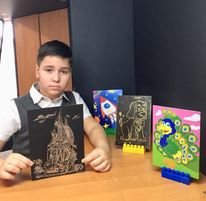 Отзывы родителей: «Я не ожидала что мой ребенок может с удовольствием и довольно успешно выполнять работы в технике граттаж, алмазная мозаика. Я думала ему это сложно и даже не доступно….. »
