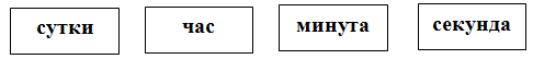 – Расположите их в порядке возрастания. (Секунда, минута, час, сутки, неделя, месяц.) Слайд 3 Секунда – самая маленькая единица измерения времени, от латинского «второе деление». Минута – единица времени, равная 60 с, от латинского «маленький, мелкий». 1 мин = 60 с Час – единица времени, равная 60 мин. 1 ч= 60 мин Как можно назвать одним словом день и ночь? Как понимаете смысл пословицы «День и ночь – сутки прочь»? Сутки – единица времени, равная 24 ч. 1 су.т = 24 ч Загадка Братьев этих ровно семь. Вам они известны всем. Каждую неделю кругом Ходят братцы друг за другом. Попрощается последний – Появляется передний. (Дни недели.) Неделя – промежуток времени, равный 7 суткам. 1 нед. = 7 сут. Месяц – промежуток времени, близкий к периоду обращения Луны вокруг Земли. Время от одного полнолуния до другого составляет 29 с половиной дней. – Какие меры времени мы не рассмотрели? (Год, век.) – К ним мы вернемся позже. 2. Работа в тетрадях. Откройте тетради, запишите число 11.02.22. Классная работа. Запишите соотношение мер времени. 1 мин = 60 с 1 ч= 60 мин 1 сут.= 24 ч 1 нед. = 7 сут. - Отгадайте загадки и ответьте на вопрос: почему именно эти загадки прозвучали? Ежегодно приходит к нам в гости: Один седой, другой молодой Третий скачет, А четвёртый плачет. (Времена года.) Какие времена года вы знаете? Какое время года сейчас? Какое время года будет следующим | Ответы учеников ( «лишнее» число 3, остальные числа, полученные при измерении массы, длины, стоимости) Пытаются отгадать загадку Время Высказывания обучающихся Ответы детей: минута, секунда, неделя и т д | ||||||||||||||
