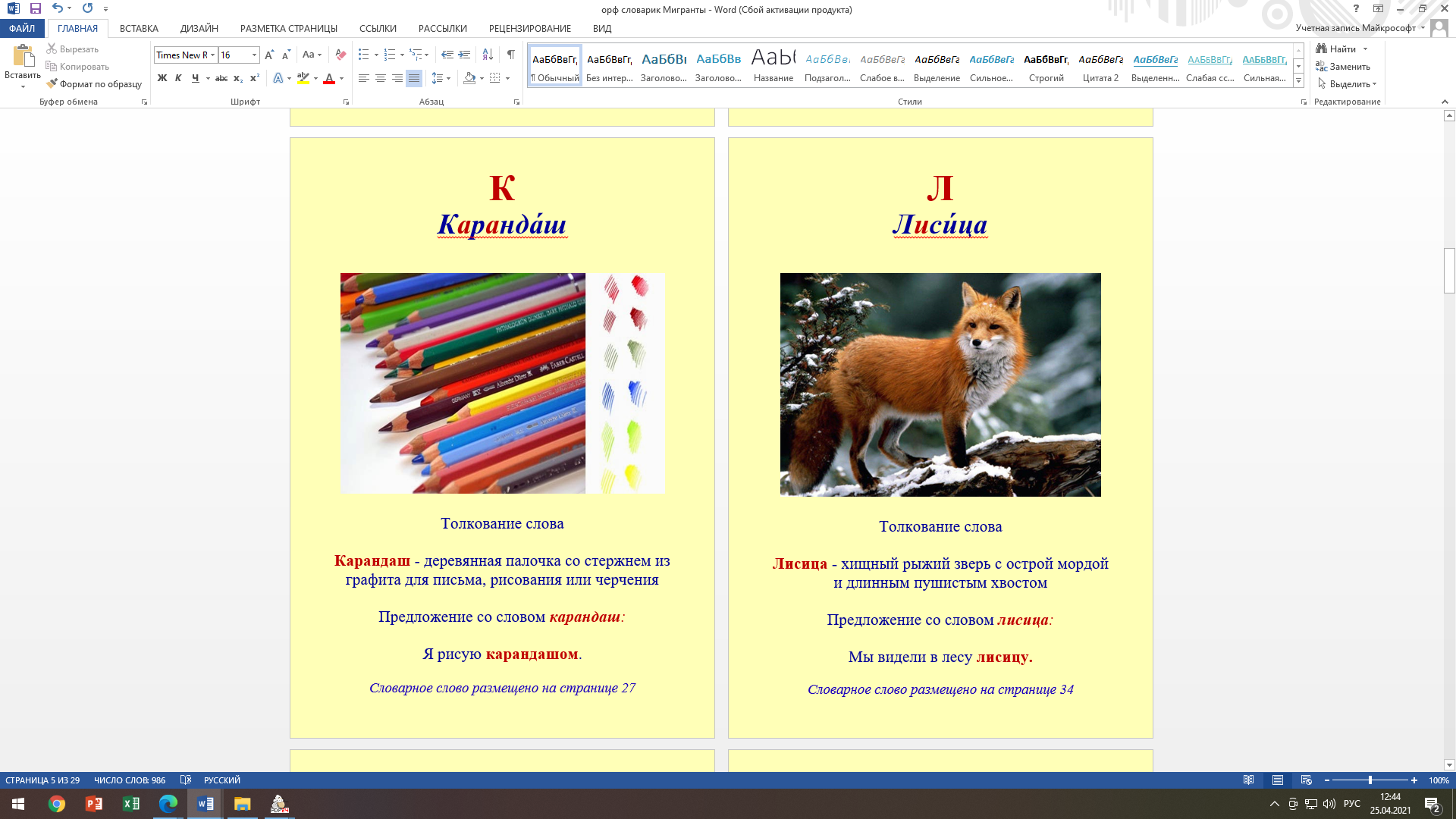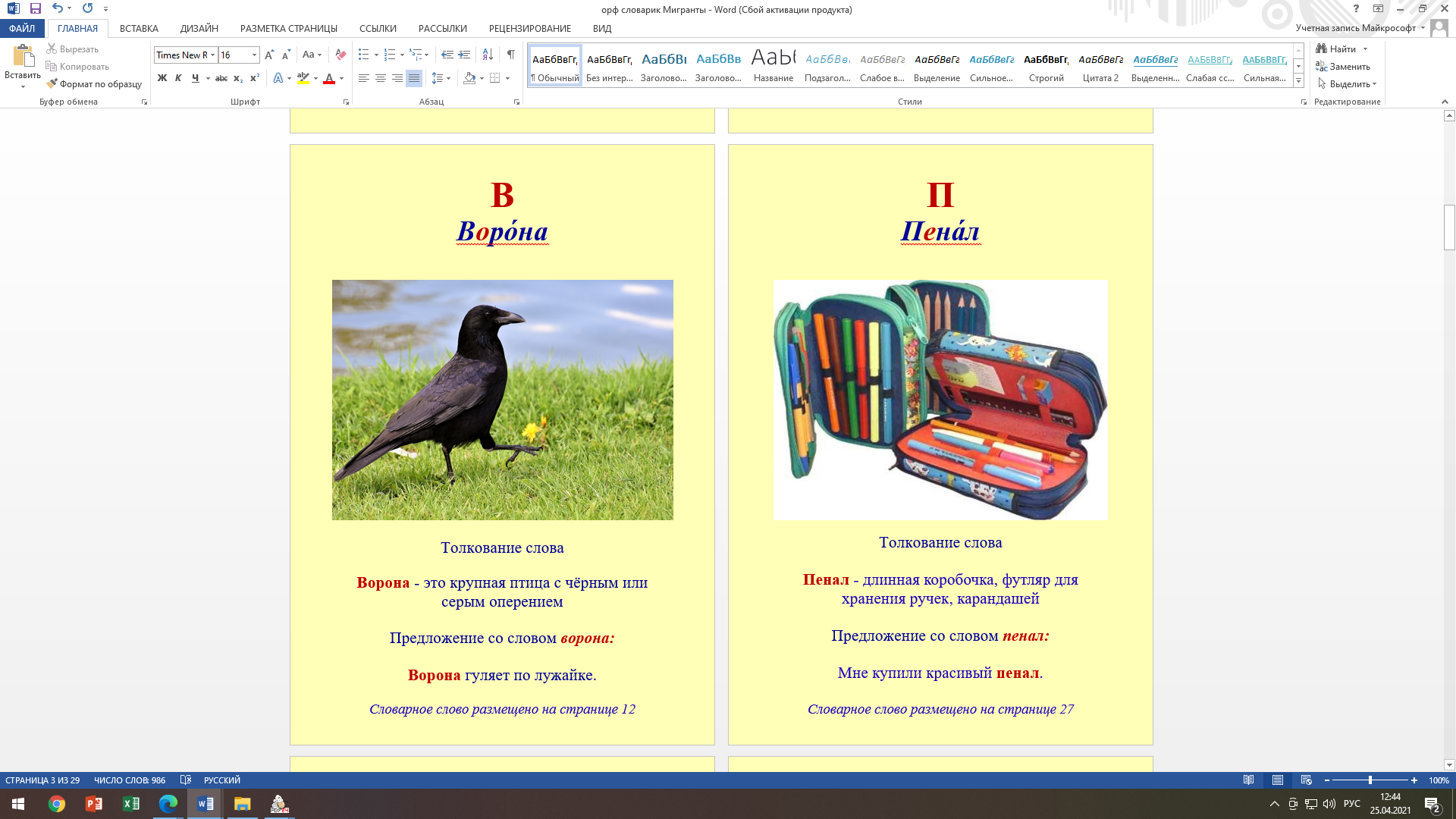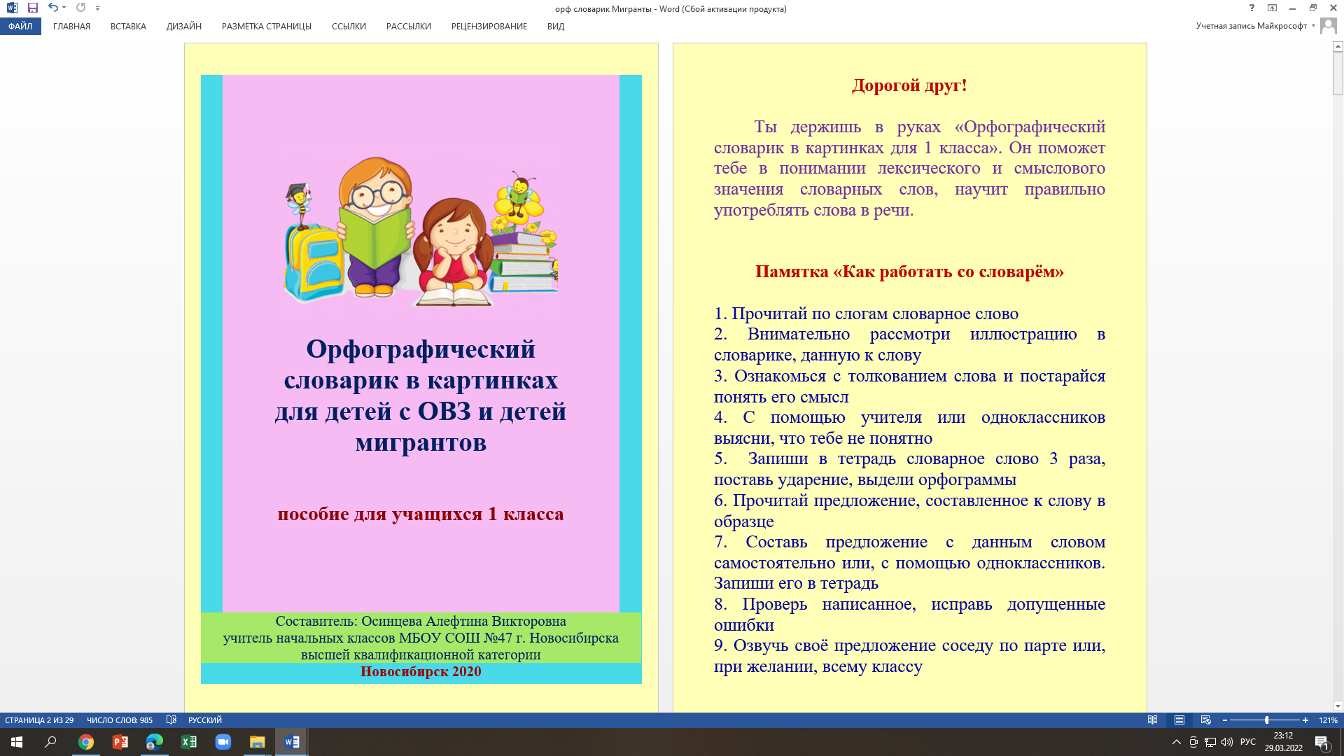 «Орфографический словарик в картинках для детей с ОВЗ и детей мигрантов»