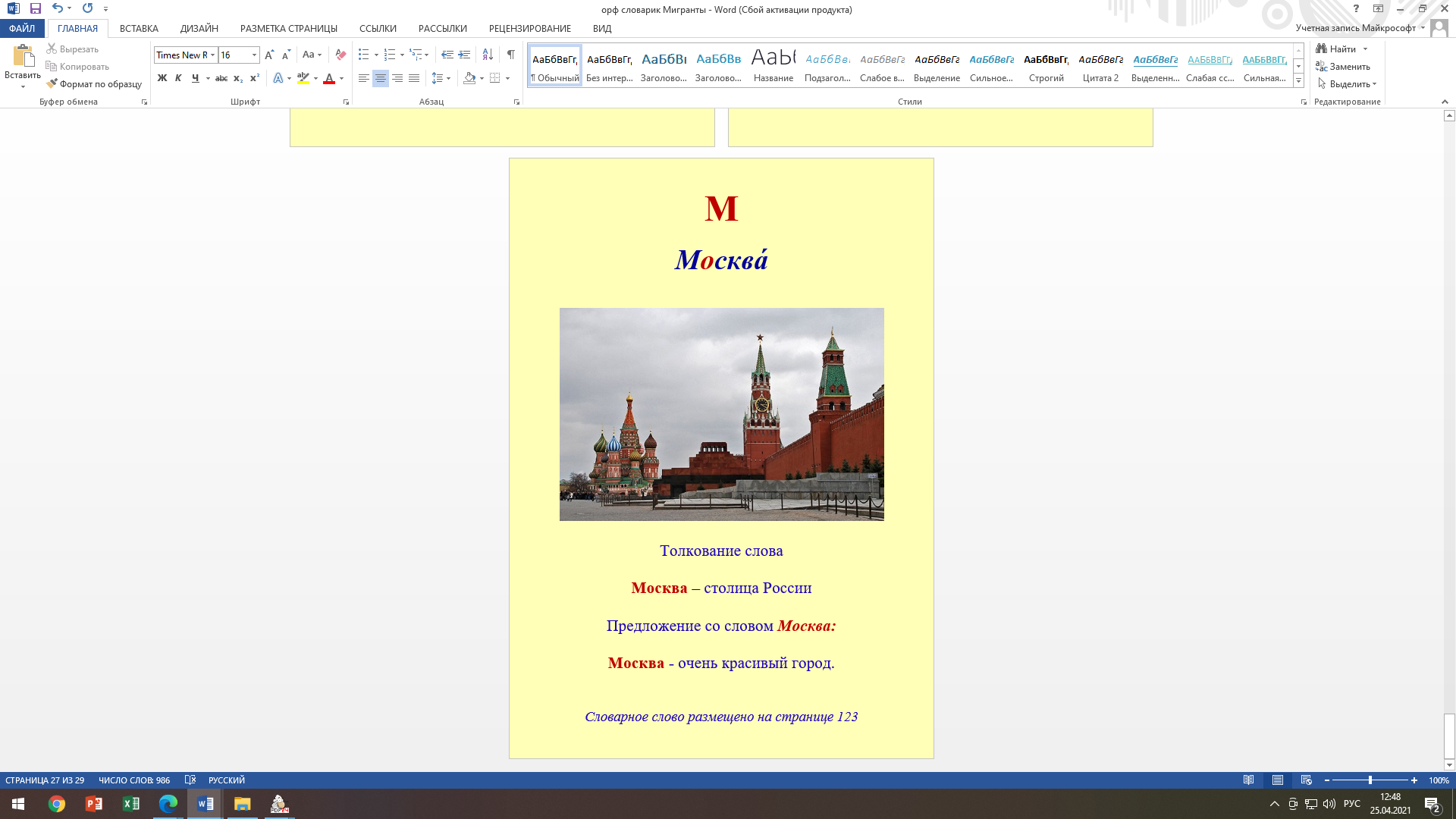 1. Прочитай по слогам словарное слово.