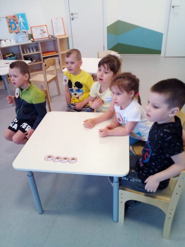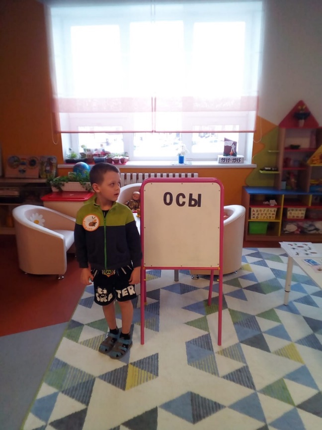 На мольберте размещается картинка. Дети находят пару одинаковых насекомых и соединяют маркером.