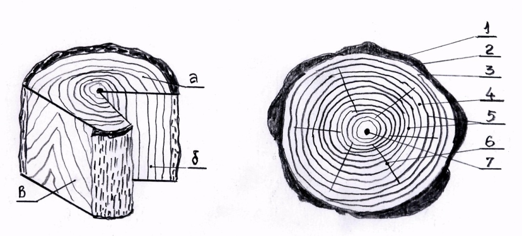 Вывод: Мы в этом задании узнали строение древесины, давайте, еще раз перечислим, из каких частей состоит дерево.