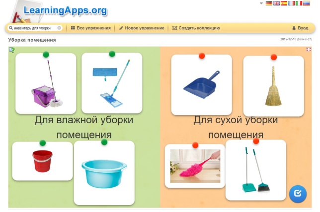 Давай продолжим дальше. | Выполняет интерактивное упражнение «Уборка помещения» в онлайн-сервисе LearningApps.org. https://learningapps.org/8441536 В случае возникновения трудностей, учитель задает наводящие вопросы и помогает обучающемуся выполнить задание.