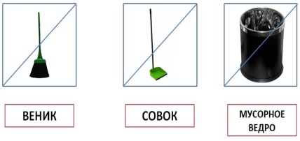 - Теперь, посмотри пожалуйста на картинки, с помощью чего, мы подметаем пол? - А куда мы заметаем мусор? - Скажи пожалуйста, а куда мы выкидываем собранный мусор? -Молодец! - А теперь, нам нужно подобрать правильные слова к картинкам: как называется этот предмет/что это?, какое слово мы к нему подберем? - Молодец, ты правильно подобрал предметы для уборки и слова к ним. -Саша, как ты думаешь, чем мы будем сегодня заниматься?