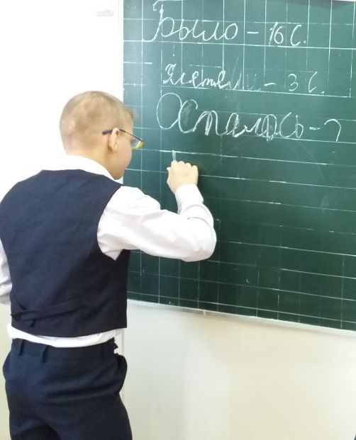 Давайте составим задачу и посчитаем, сколько снегирей останется на рябине. Решим эту задачу.