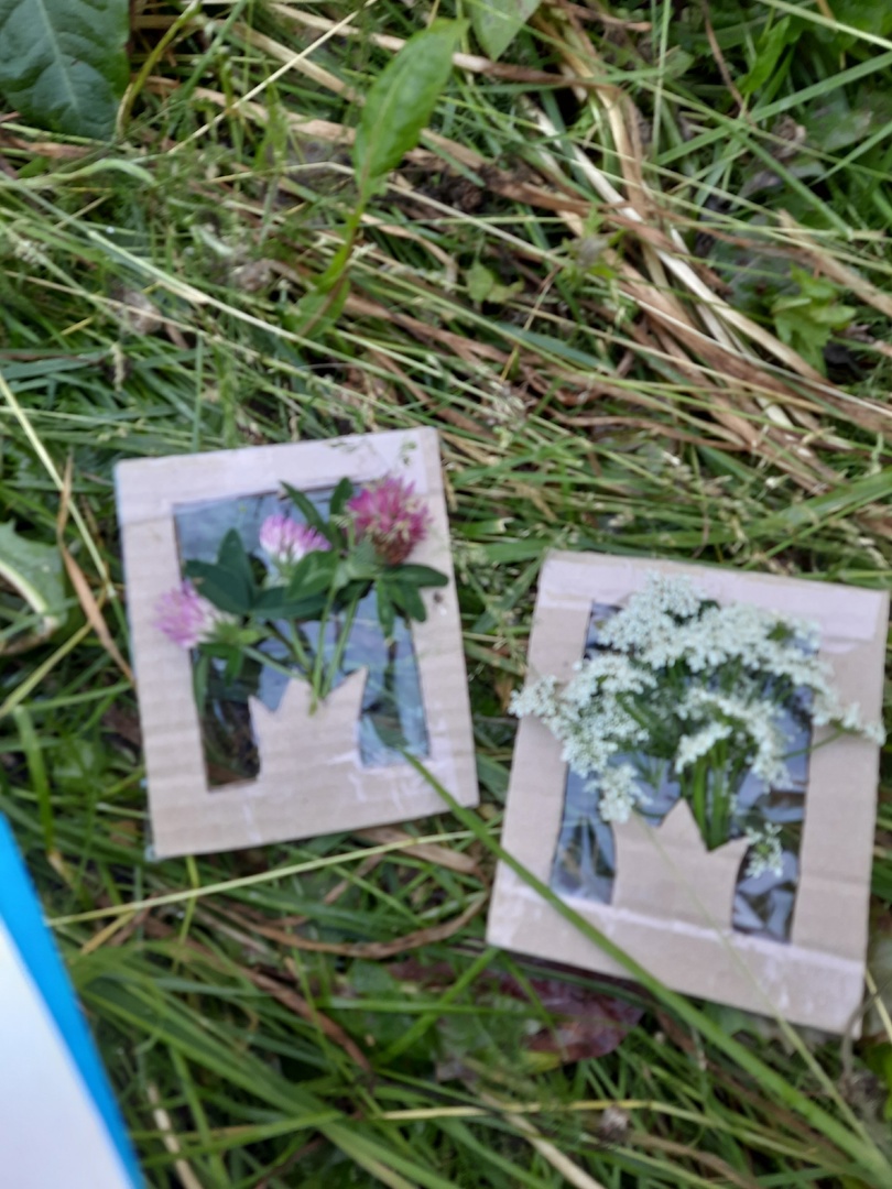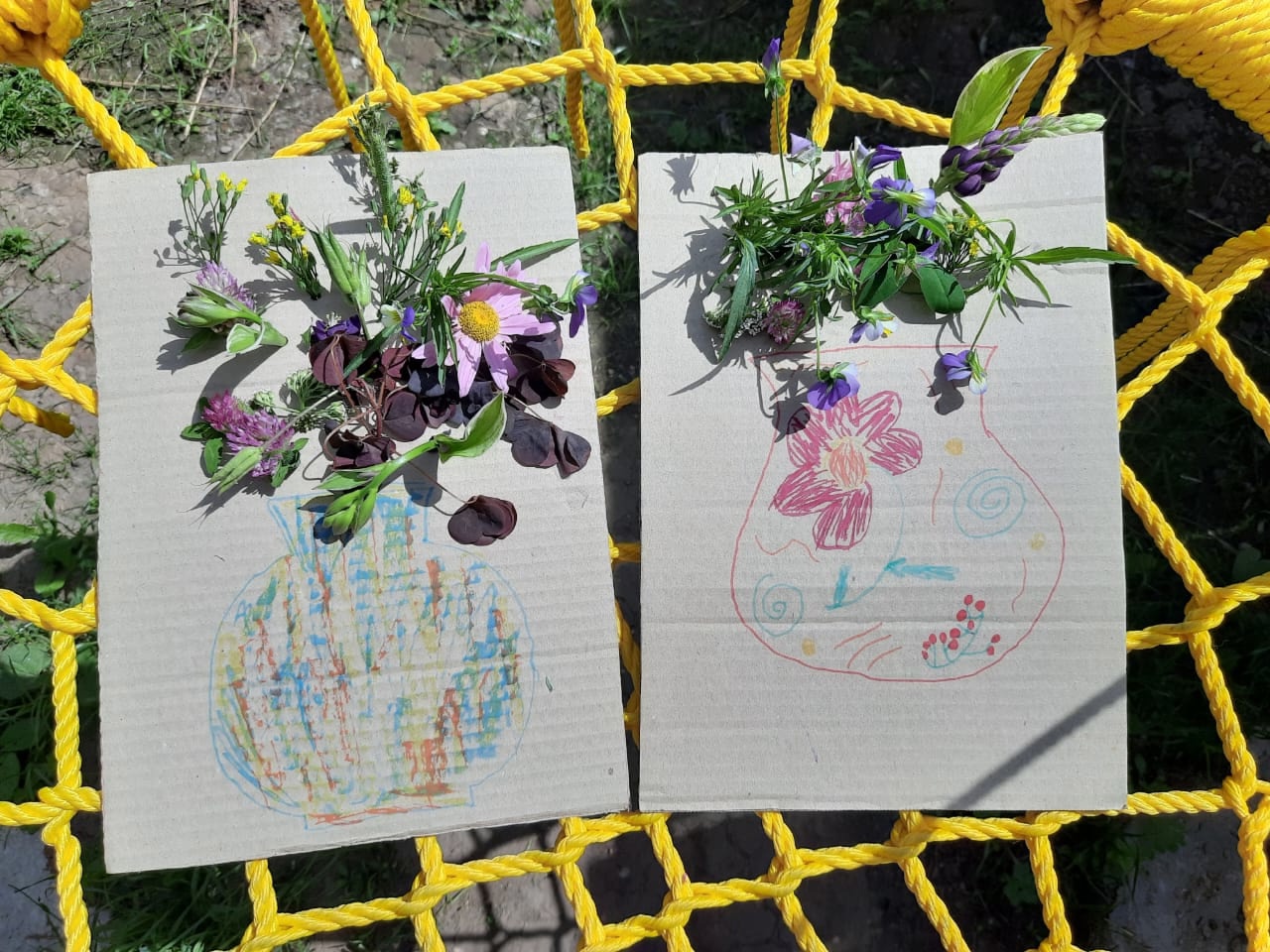 5. Прогулка на улице, формирование из растительных материалов букета на картоне и кроны дерева на рамочке, фотографирование.