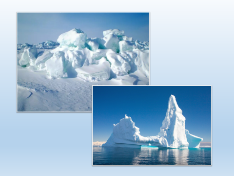 - Посмотрите, есть какая-то белая земля. Что же это такое? (Снега и льды.)
