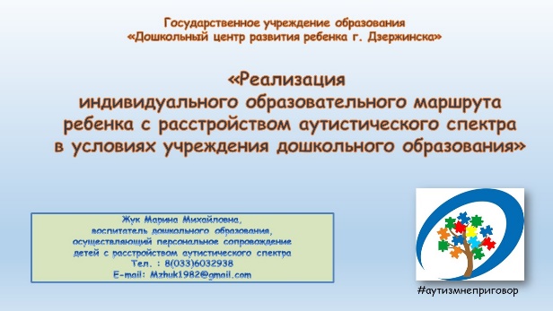 «Реализация индивидуального образовательного маршрута ребенка с расстройством аутистического спектра в условиях учреждения дошкольного образования»