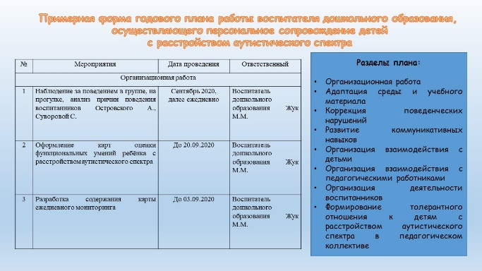 оспитателем дошкольного образования, осуществляющим персональное сопровождение, организуется обучение ребенка с расстройством аутистического спектра: