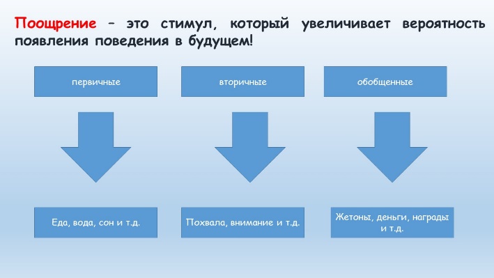 Поощрение - это стимул, который увеличивает вероятность появления поведения в будущем.