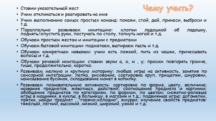 Во время формирования навыка мы предоставляем поощрение после каждой реакции, потом каждые 2-3 реакции и т.д. Чем сложнее навык, тем мощнее должно быть поощрение.