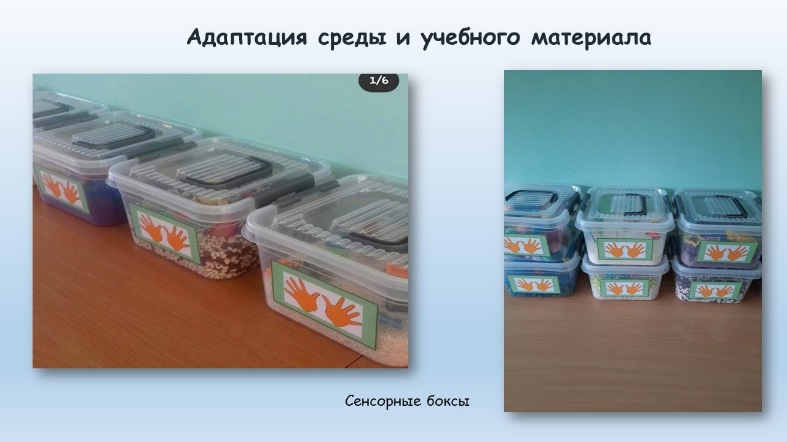 Сегодня вряд ли стоит кому-то доказывать, что дети в спектре сталкиваются с проблемами сенсорной и информационной обработки. В связи с этим особое внимание мы уделяем пополнению предметной игровой среды группы игровыми пособиями по развитию сенсорных эталонов и мелкой моторики. Одной из педагогических находок явились сенсорные боксы, использование которых в образовательном процессе выступает инструментом поощрения, средством для обучения в естественной среде, успокоения, сенсорных игр и т.д. При помощи сенсорных боксов воспитанники с расстройством аутистического спектра обучаются навыкам проведения досуга, таким образом заменяя долю неприемлемого повторяющегося поведения.
