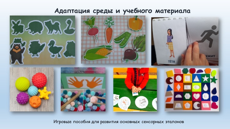 ополнительно для воспитанников с расстройством аутистического спектра мы разрабатываем и оформляем игровые пособия для развития основных сенсорных эталонов («Нади тень», «Половинки», «Магазин на липучках», «Собери по образцу», «Соотнеси по цвету» и др.). Следует отметить, что работа с детьми в спектре требует постоянного ежедневного обновления материала. Игровые пособия, призванные решать одни и те же задачи, мы оформляем в различных конфигурациях, для того, чтобы убедиться, что навык соотнесения, систематизации, обобщения сформирован, а не просто заучен ребенком наизусть. Кроме того, большинство пособий выполнено с использованием липучек, так как звук отрывающейся липучки вызывает особые слуховые ощущения у ребенка с расстройством аутистического спектра.