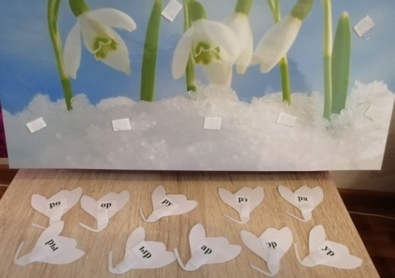 | «Автоматизация звука в слогах» Проговариваем открытые (ра, ро, ру, ры, рэ) и закрытые (ар,ор,ур,ыр,эр) слоги. Берем бутон подснежника, произносим слог и прикрепляем на лист календаря (отслеживаем четкое произношение). |