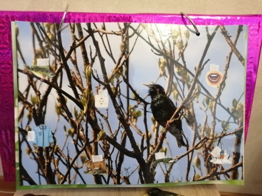 | «Автоматизация звука в начале слова» Снимаем птицу (скворца), произносим слово-картинку, прикрепляем птицу обратно на лист календаря |