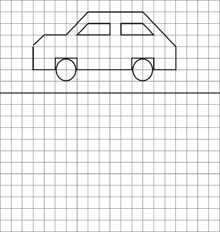 - У Папуса есть чертеж, по которому можно отремонтировать автомобиль. Рассмотрите внимательно схему машины и постройте по клеткам такую же для Папуса.