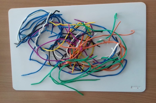 5. То же самое сделайте и с пластилином другого цвета. Выдавите нужное количество пластилина для создания картины. Жгутики для пластилинографии готовы.