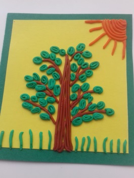 Я вам сейчас покажу как можно быстро и легко нарисовать пластилиновыми жгутиками дерево.