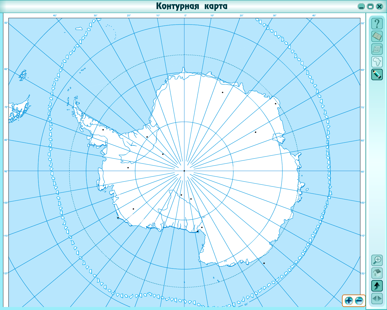 Оборудование | Нетбуки, интерактивная доска, презентацииMicrosoftPowerPoint, интерактивные плакаты «История географических открытий», раздаточный материал, атласы для 7 класса, трафареты «Антарктида», контурные карты Антарктиды. |