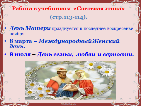 1.Работа с учебником «Светская этика» (стр.113-114).