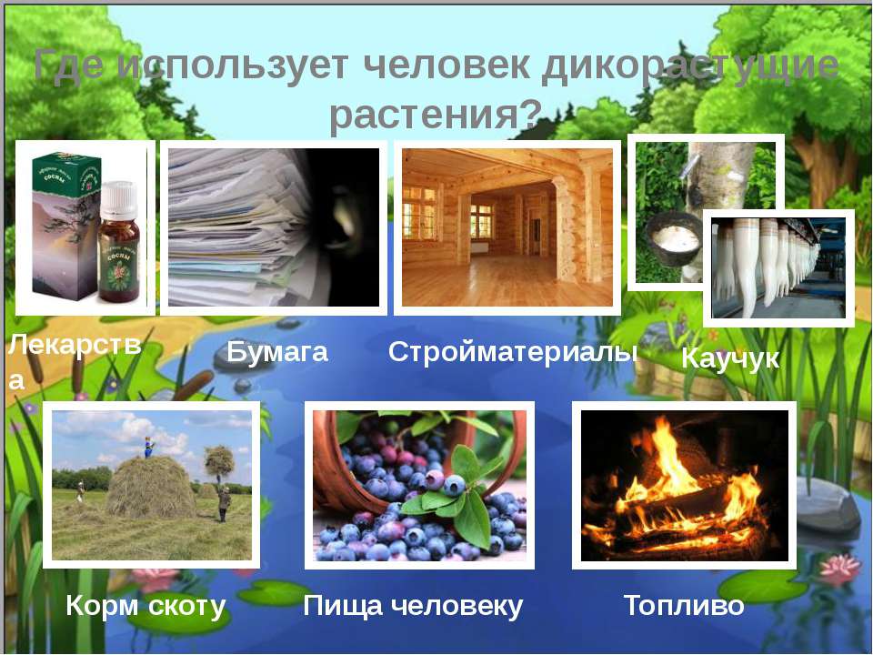 - Ребята, давайте проследим по иллюстрациям, что дает природа человеку? (Ответы учащихся: отдых, материал для пошива одежды, бумагу, кисти, краски, воду для питья, стирки, принятия ванн, еду, мебель, дома, воздух, лекарства и многое другое)