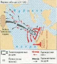 Александр Невский заманил их вглубь нашей земли, на лёд Чудского озера, где в засаде была укрыта наша пехота и конница.