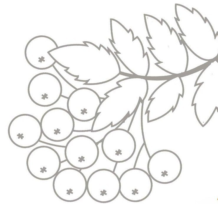Детям предлагается шаблон ягод рябины. Используя ватные палочки и краски, они должны раскрасить ягоды строго по шаблону, не выходя за указанные границы.