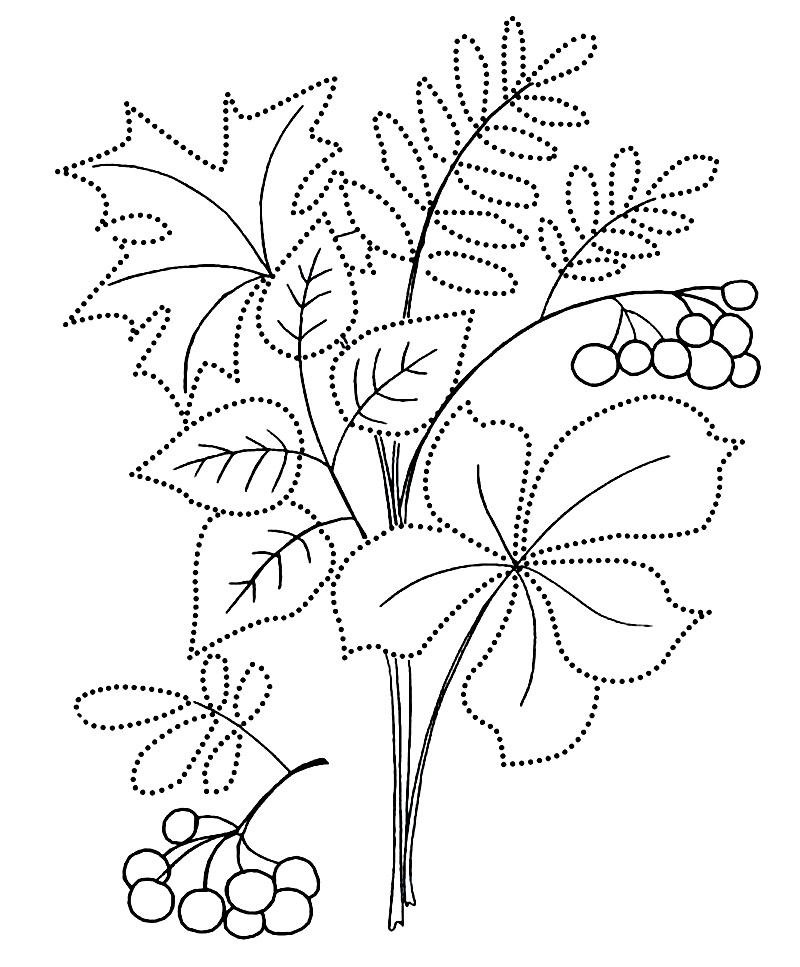 - Перед вами картинка с осенним букетом (Приложение 2). Надо дорисовать по точкам и раскрасить, чтобы получился для мамы настоящий осенний букет.