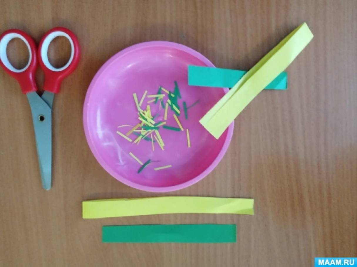 Траву делаем из мелко нарезанной цветной бумаги