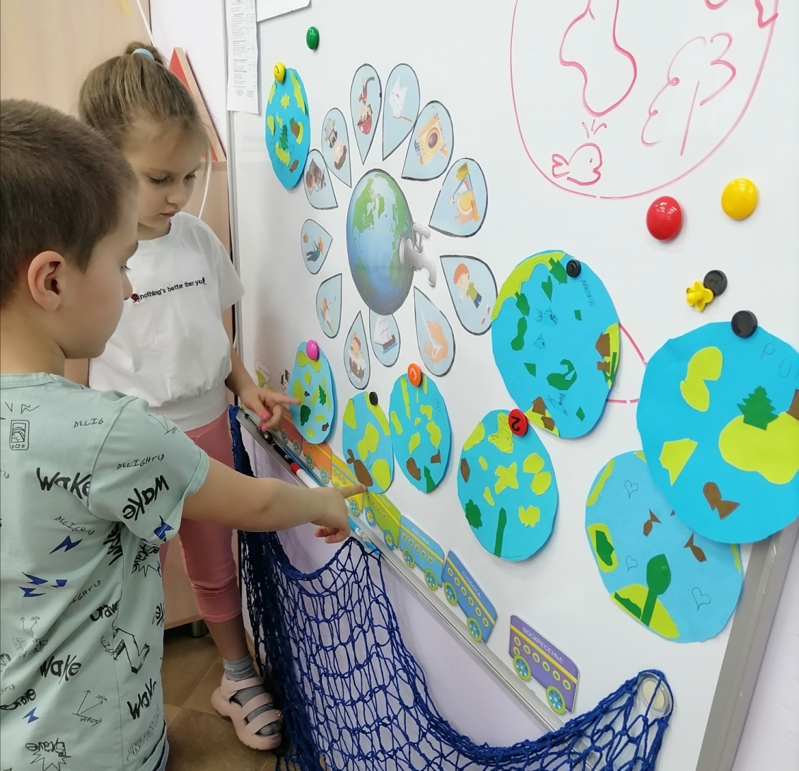 Воспитатель: У каждого человека есть свой дом, и у каждого животного есть свой дом. И у насекомых, цветов и деревьев есть дом. А как можно назвать наш общий дом? (Земля)