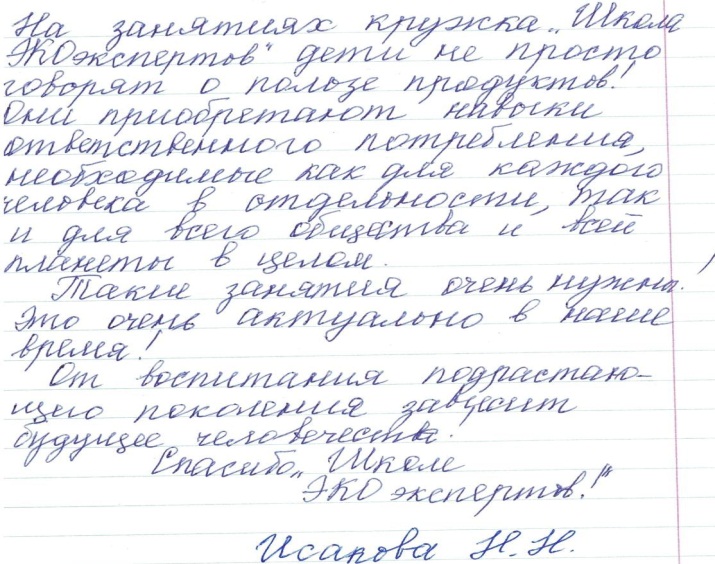 Отзывы родителей о результатах работы по реализации методики «Школа ЭКОэкспертов