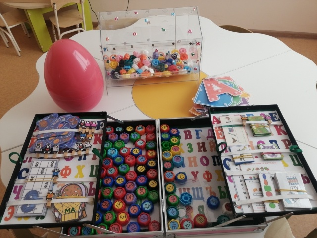 Ход игры: Дети по очереди достают по одной фишке с изображением буквы. Берут плоскостную букву, из набора картинного материала выбирают те картинки, в слове которого есть данный звук.