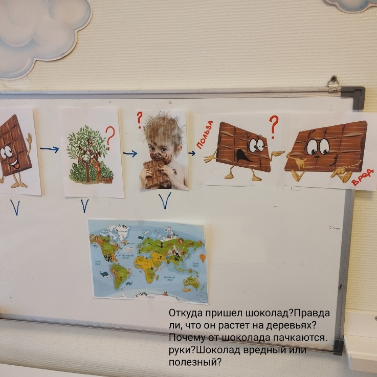 Воспитатель: итак, перед нами стоит первая проблема: «Что такое шоколад? И откуда он к нам пришел?» Можно ли помочь малышам?