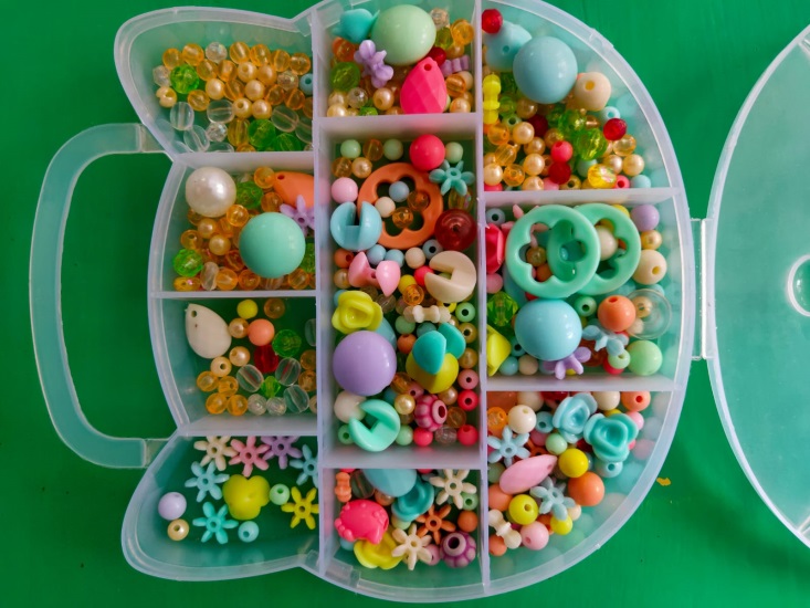 Кстати, работа с таким мелким материалом очень полезна деткам любых возрастов для развития мелкой моторики и для тренировки усидчивости. И всего лишь за 5-10 минут творческого процесса получаются замечательные аксессуары, которые можно использовать в сюжетных играх.