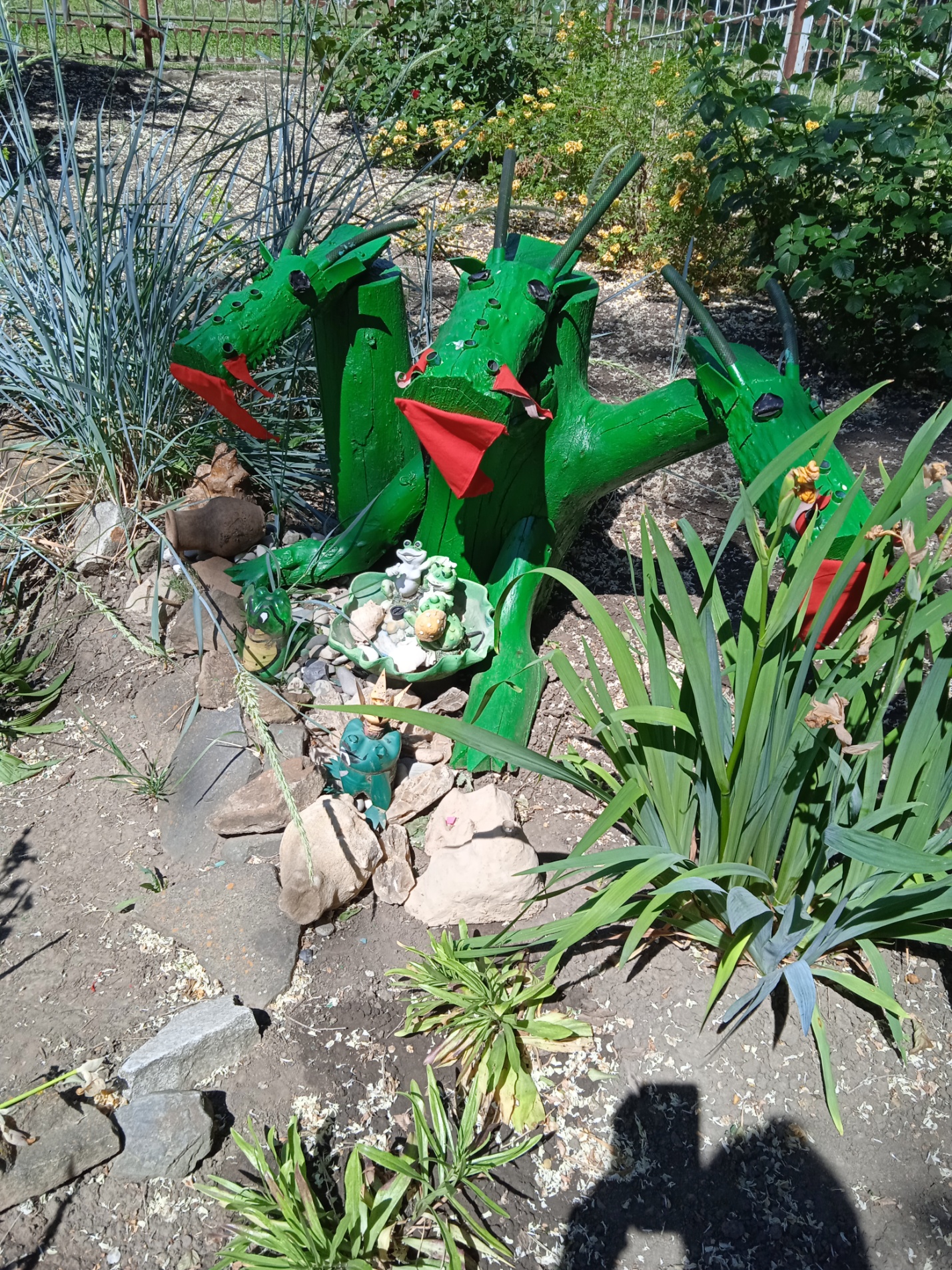 Этот дракон сделан на участке детского сада, для украшения уголка природы. Сделан он из спиленного дерева.