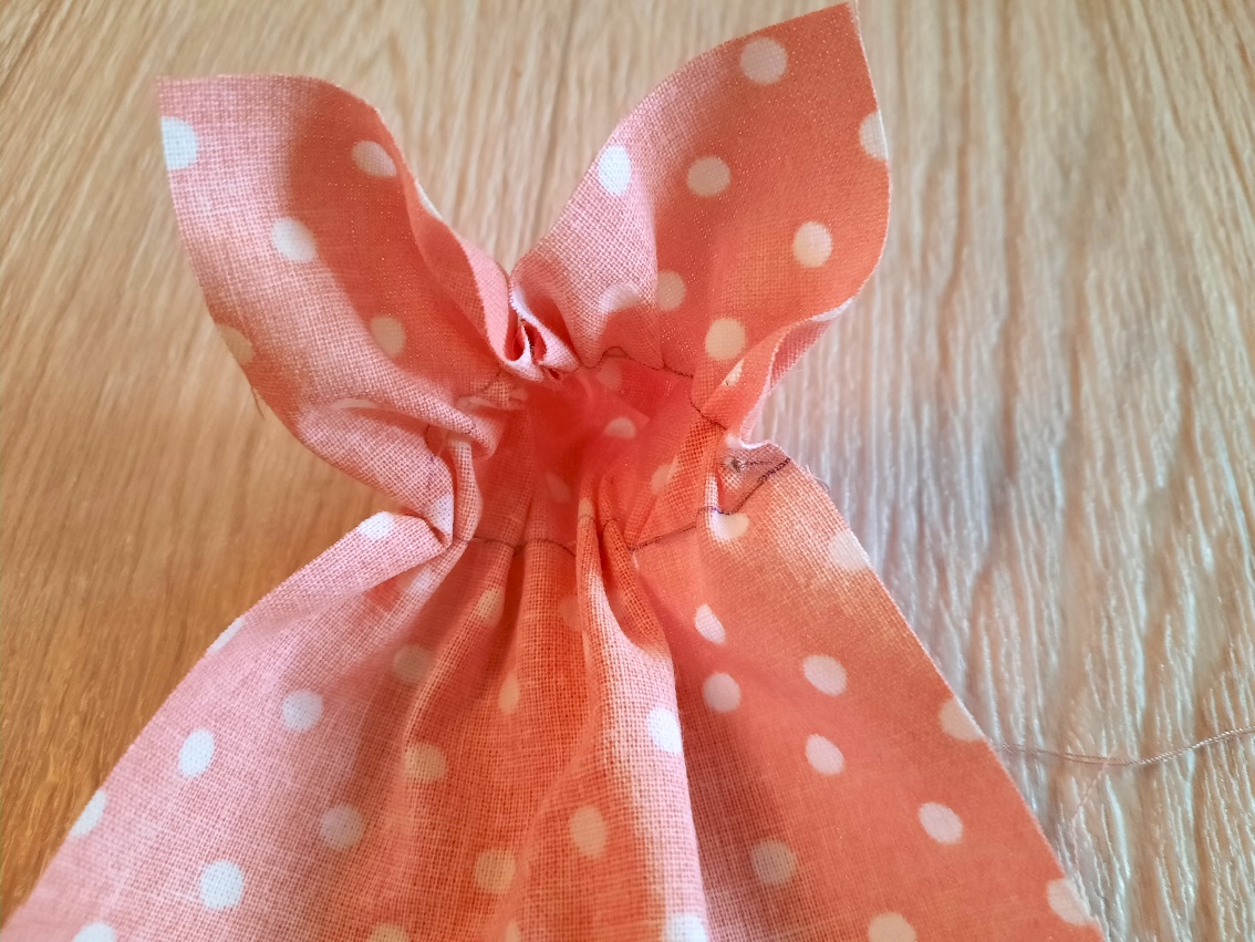 Потяните нить, чтобы получился своеобразный «мешочек».
