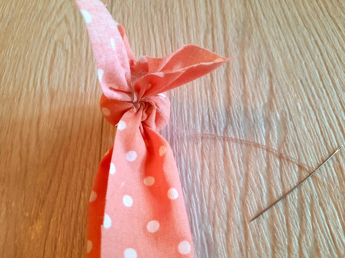 Заправьте припуск внутрь, стяните плотно отверстие, закрепите нить и отрежьте её.