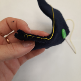 9. | Набей изделие синтепоном. Зашей отверстие петельным швом. |