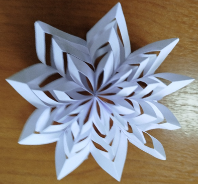 - выполнить несложные элементы и приёмы в декоративно-прикладном творчестве (соединение частей «красавицы снежинки»).