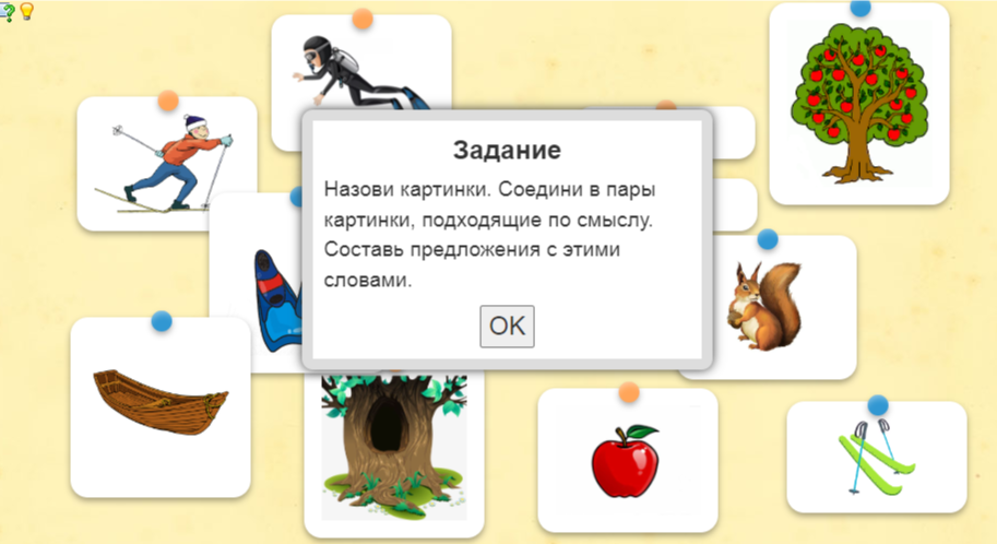 6.Дидактическая игра «Составь предложение» (На интерактивной доске дети соединяют подходящие по смыслу картинки и составляют предложения Рис. 6-7).