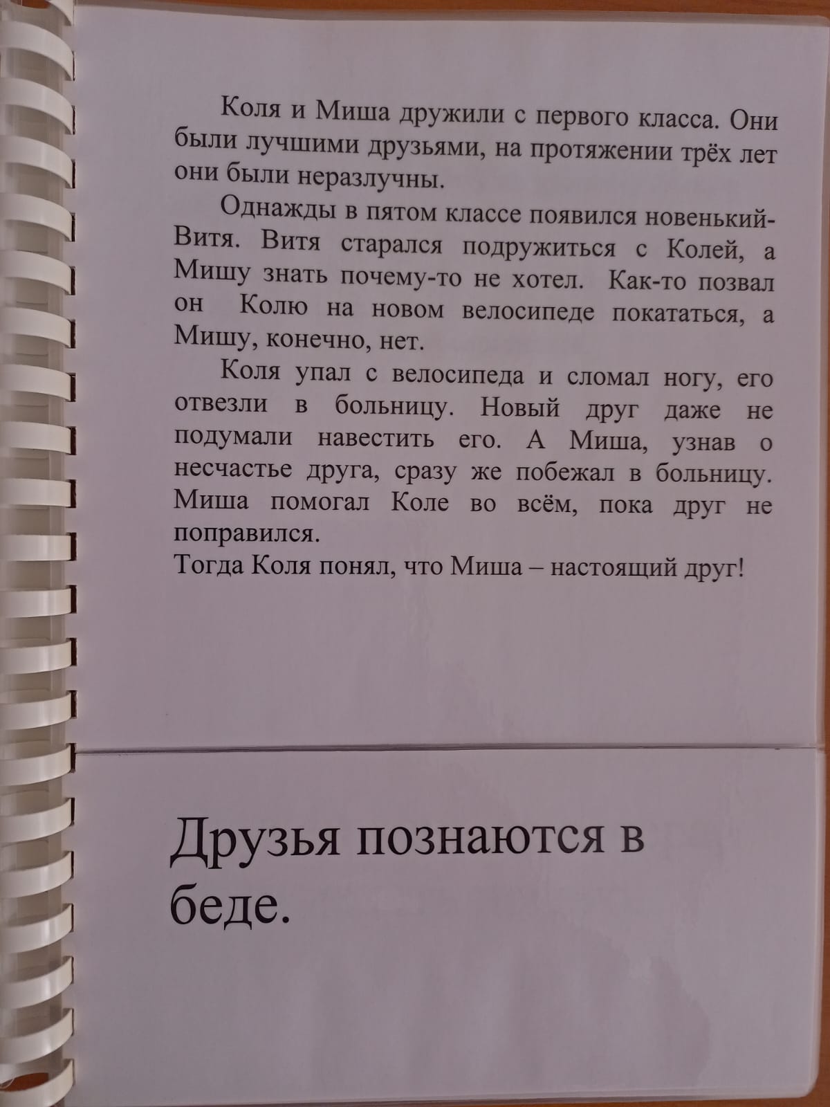 Дима и Саша дружили ещё с детского сада. И в школе, и во дворе они всегда были вместе. Как-то делали друзья шалаш на поляне за домом, увлеклись работой и не заметили подбежавшего к ним огромного пса. Мальчики услышали грозное рычание и оглянулись. Собака залаяла. Саша быстро юркнул в шалаш, а Дима растерянно замер перед собакой. Тогда Саша выскочил из укрытия, схватил палку и прогнал собаку. «Спасибо тебе», - поблагодарил Дима. «А разве можно было иначе?» - удивился Саша.- Сам погибай, а товарища выручай»