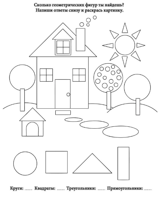 ( квадрат, круг, овал, прямоугольник, треугольник).
