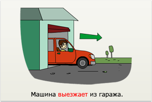 Процедура. Логопед кладёт перед ребенком картинку с машинкой и просит прокомментировать, что делала машинка.