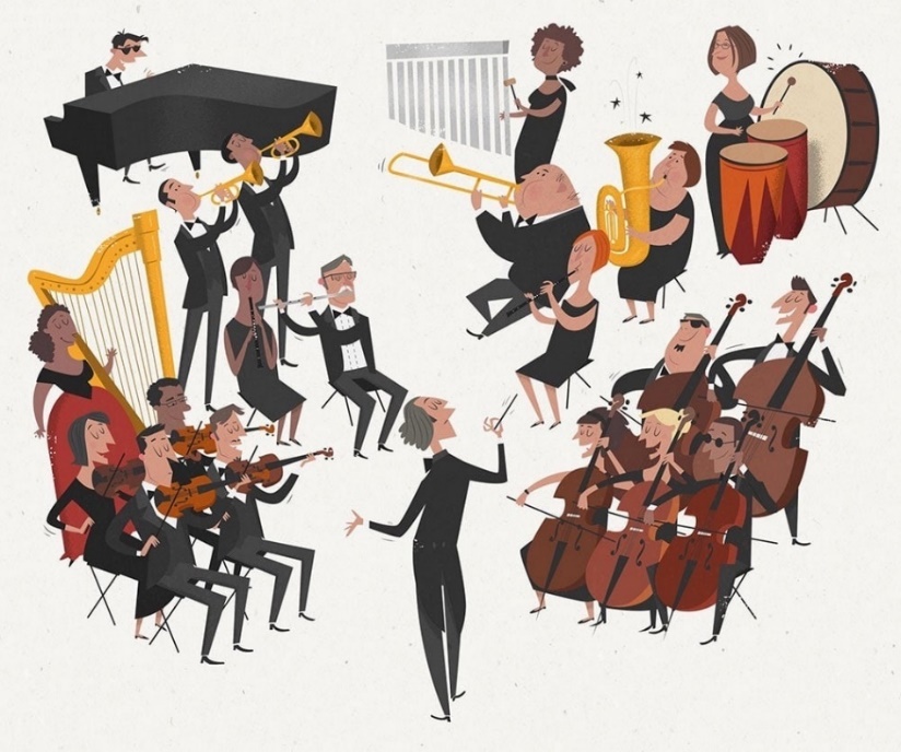 Скрипач, баянист, пианист, виолончелист, гитарист, барабанщик.