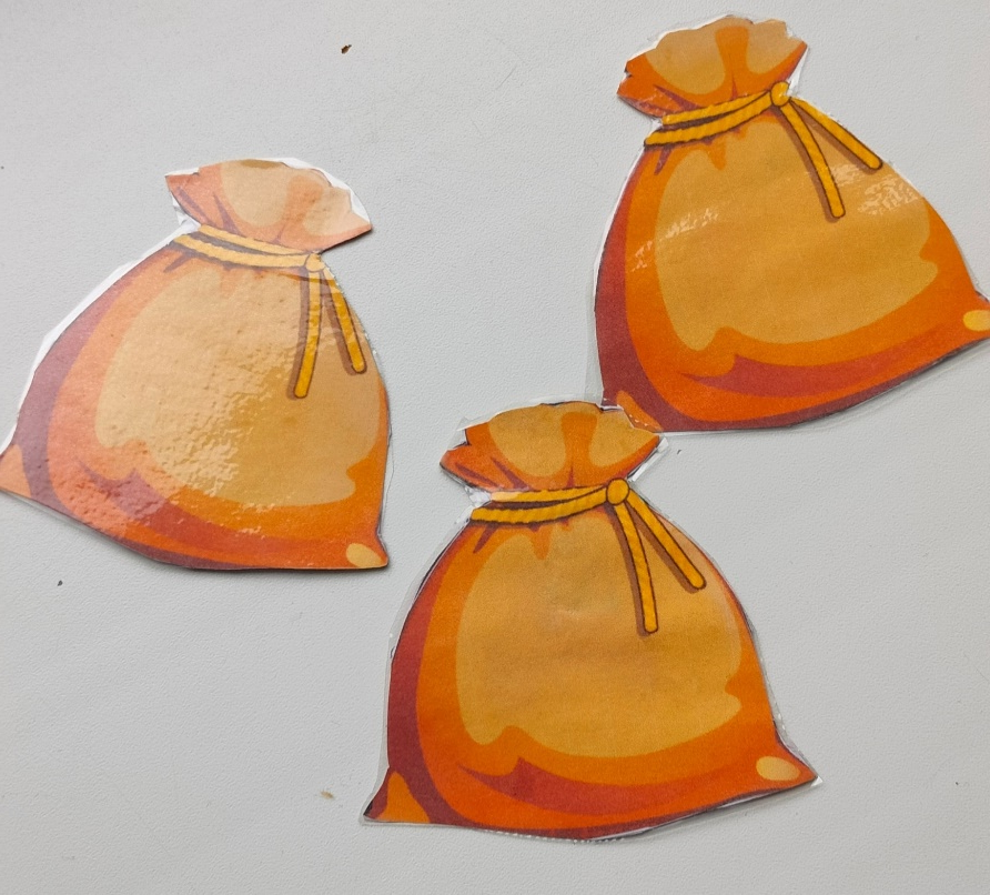Инструкция: Учитель на примере одного мешочка показывает с помощью фонарика как можно разглядеть картинки. Далее, дает 2 фонарика и дети по очереди просвечивают мешочки.