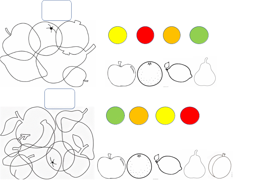 3. соотнести фрукт с цветом соответствующим карандашом. Будьте внимательны! Один цвет может подходить ко многим фруктам и ягодам.