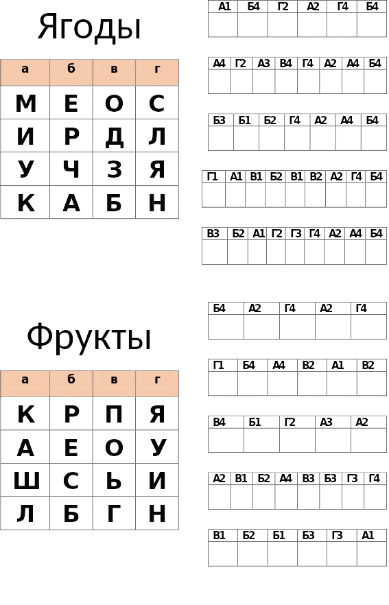 2.обвести на общем рисунке только те фрукты и ягоды, которые нарисованы с правой стороны;