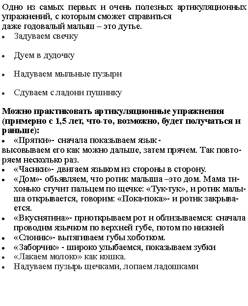 Артикуляционные и дыхательные упражнения