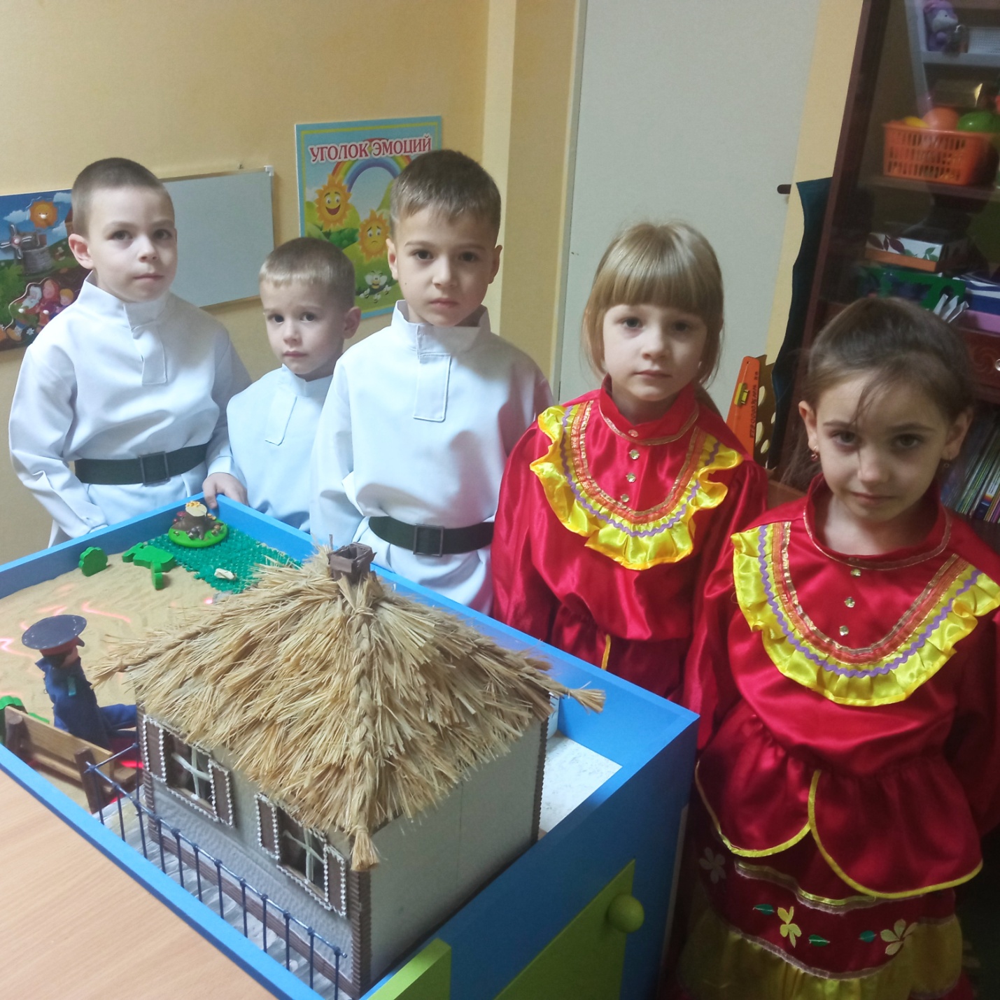Взрослый (логопед): Ребята, сейчас мы с вами сыграем сказку. Она называется «Курень». Сочинили ее на Дону давным-давно. Сочинили ее наши предки, которые жили здесь, где мы с вами сейчас живем. Вы эту сказку уже слышали, вы ее даже уже пересказывали.