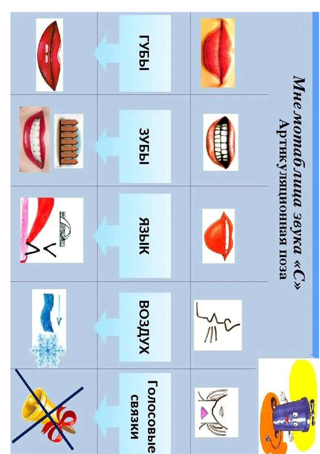 Карточка зрительные символы, обозначающие уклад звука /С/.